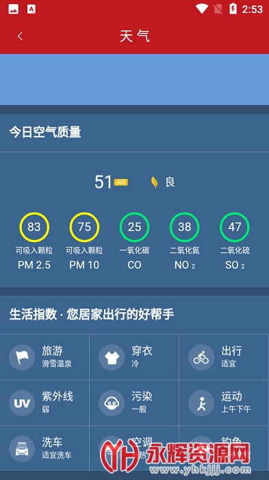 多样化的天气数据,让你知晓温度、湿度、风力、风向、出行指数等。