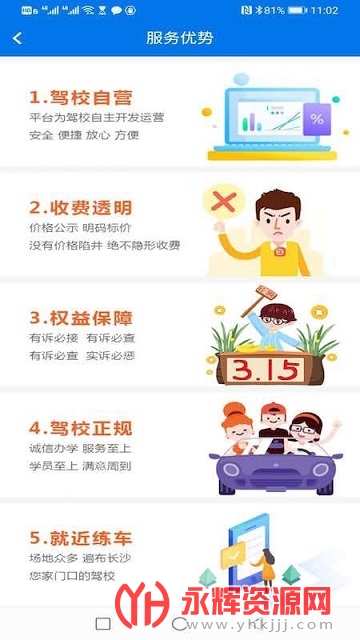 驾校正规:线下驾校为平台自有,服务理念:诚信办学、服务至上、学员至上、满意周到;