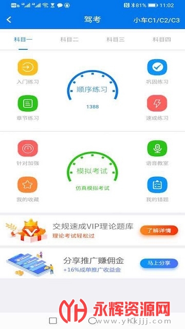 在应用中就能练习科目一和科目四的知识,并能记录用户的练习数据;