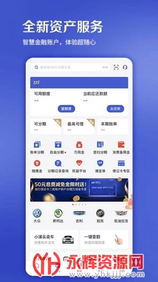 浦大喜奔信用卡app是一款非常优质的金融管理软件,软件的功能十分全面,能给你提供查积分、账单分期、办卡等等一些功能,有需要的朋友们可以来永辉资源网下载使用哦!