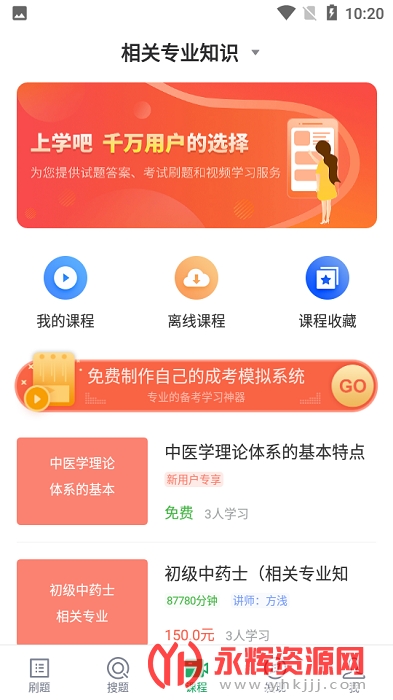 中药学题库app是一款非常好用的医学题库软件,这款软件专为广大医考生打造,有着海量的医学知识和题库资源,和众多的精品课程,用户们可以随时在线进行学习,通过练习题目,快速的掌握各种知识点,提高学习成绩,顺利的通过考试!感兴趣的朋友们就来下载吧!