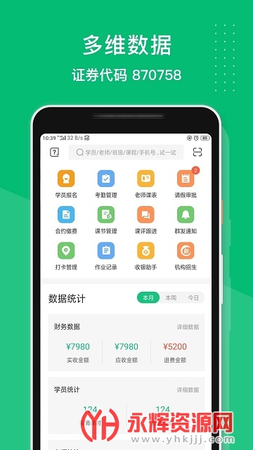 数据统计:缴费记录,财务对账,财务可视化分析,消课统计,招生统计,多维数据导出