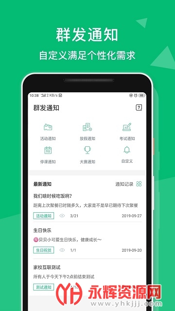 家校互联:上课、签到、课评、续费通知,课堂互评与分享(视频,图片,文字),布置作业,群发通知,品牌小程序,嵌入机构公众号,实现通畅家校沟通