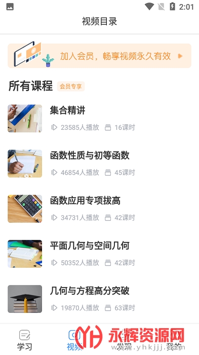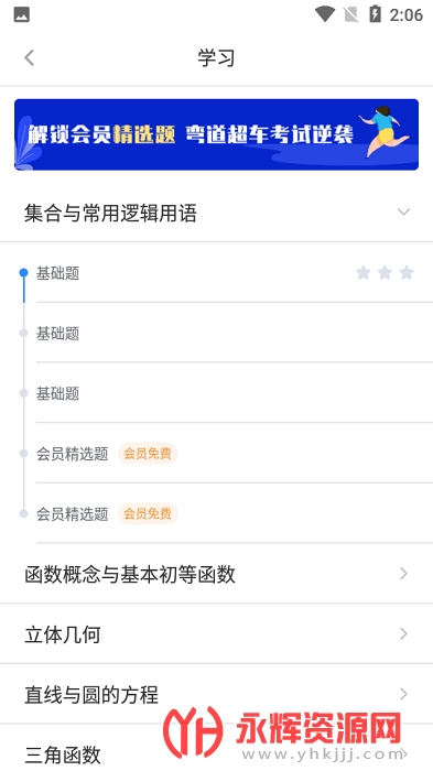 高一数学app手机版是一款为高中生打造的掌上数学学习软件,软件上有着丰富的数学学习课程,涵盖了集合精讲、函数和几何等等,各种详细的课程资源应有尽有,可以满足大家的各种学习需求,同时还有着海量的题库资源,大家可以随时在线进行学习,通过刷题巩固学到的知识,更加高效的进行学习!欢迎感兴趣的朋友们前来永辉资源网下载!