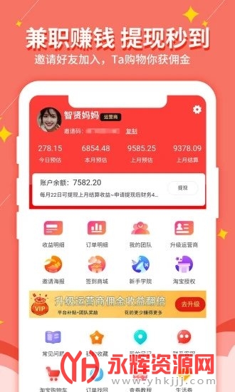 通过邀请好友加入软件的方式,大家能够得到对应的返利佣金,在手机上轻松赚钱。