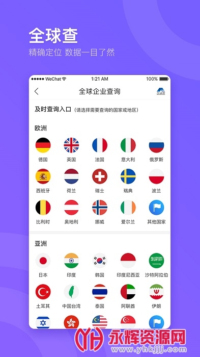 企通查app提供五大洲240+海外国家或地区企业数据实时查询;