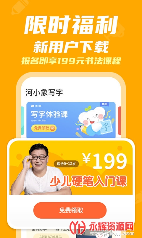 河小象写字app是一款专注于少儿书法教育的软件,河小象写字旨为提升少儿硬笔,软笔书法等综合素养,让每位孩子的写字能力都能得到提升,提升孩子的书写水平,让孩子能够练得一手好字,非常不错的一款软件,有需要的朋友现在就来下载使用吧!