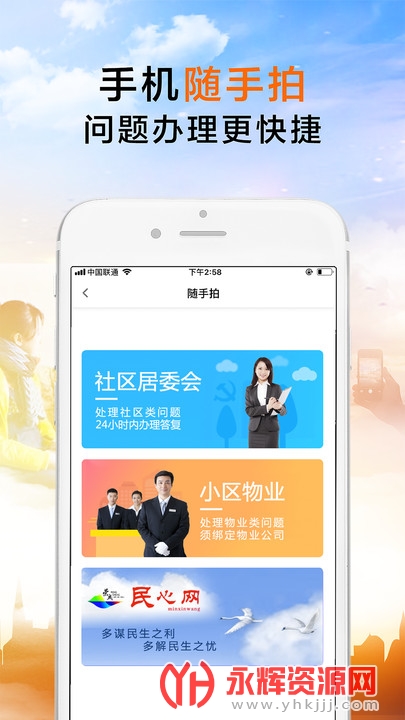 线上社区:居民交流论坛,其中“随手拍”栏目进行派单办理。