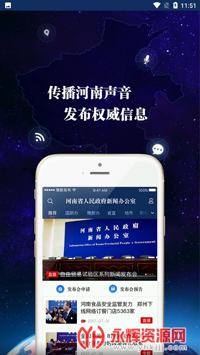 河南发布app是为河南当地朋友们提供的资讯发布软件,使用这款软件可以让你不出门了解到河南当地热点资讯内容,对这款软件感兴趣的朋友们还在等什么呢?快来永辉资源网下载吧!