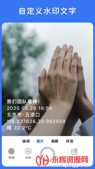 时间,地点,经纬度可自己编辑修改的水印相机。