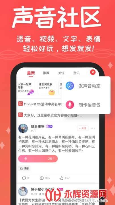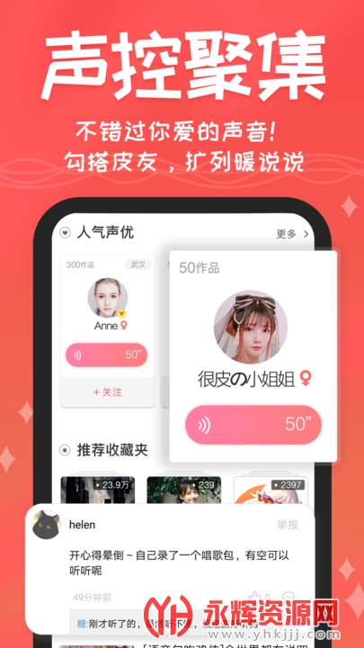 二次元,段子手,土味情话等不同领域萌新声优等你来撩。