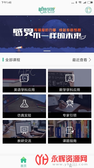 敏特研学院app是一款专为广大教师朋友们打造的教育学习软件,软件上有着众多的精品课程,用户们可以随时在线进行学习,非常的方便快捷。可以帮助老师们快速的学习,掌握更多的教学技巧,提高自己的教学水平!欢迎感兴趣的朋友们前来永辉资源网下载!