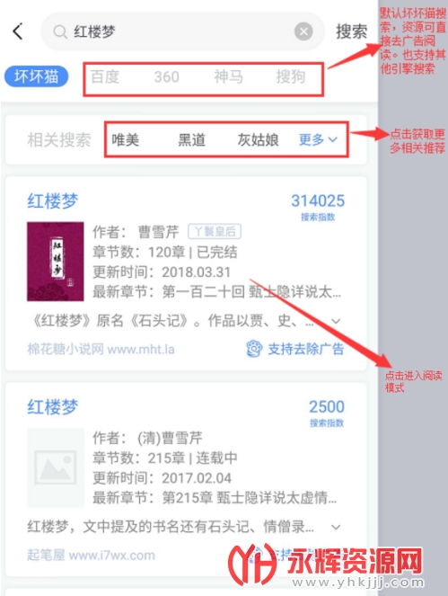 坏坏猫搜索是一款非常不错的手机小说搜索阅读应用软件,为用户提供了非常给力的搜索功能,没有搜不到的小说,支持在线阅读和离线下载。
