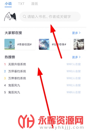 1、其实坏坏猫搜索主要是提供了搜索小说的服务,大家不仅可以直接搜索自己想看的小说,还能够通过下方列表查看最近的热门小说。