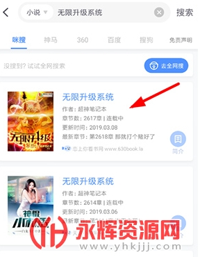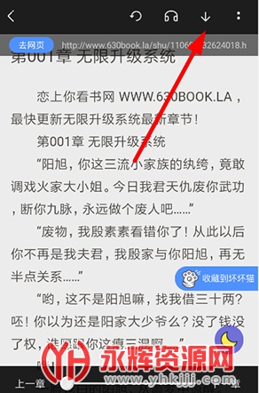 2、小编这边以“无限升级系统”为例子,大家可以通过上方的列表选择不同的书源,然后点击进入阅读界面下载文件;