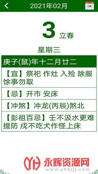 2、带老黄历,可查看当天起30天内老黄历信息;
