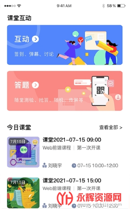 拥有优质的教学课程资源,支持在线学习、在线考试以及参加各种课堂活动。
