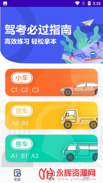 高效练习,不管是小车c1、c2、c3,还是货车的a2、b2,还是客车的a1、b1、a3等都是有对应的题库的学习的,可为用户轻松的拿本。