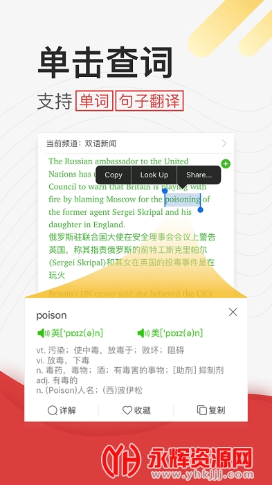 学英语听力是一款专业的英语听力学习软件,软件上有着丰富的英语文章,并且还有着详细的翻译和英语发音,大家可以随时跟读,不仅能够锻炼自己的英语听力,还能提高自己的英语发音水平,从而有效的提升自己的英语成绩!欢迎感兴趣的朋友们前来永辉资源网下载!