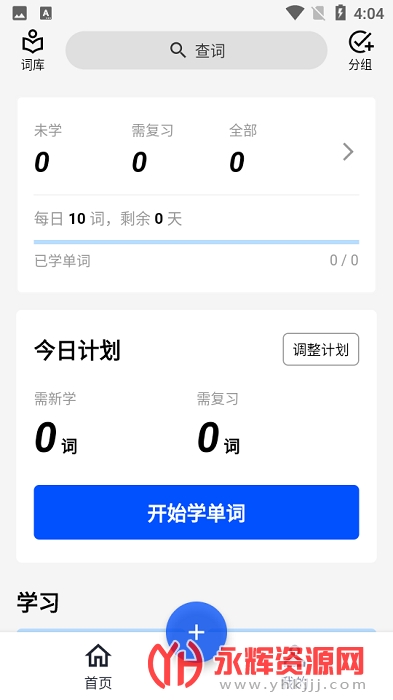 在APP首页点击添加按钮,可以主动输入添加生词。
