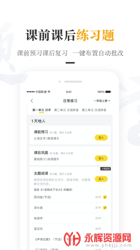 一米阅读老师。为中小学语文老师提供在线布置和检查学习任务等功能,老师还可通过分析学情,实时了解学习进度并选择教学方式,多方面提升孩子的学习成绩。
