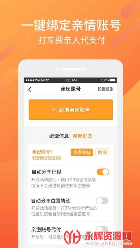 绑定子女东风出行亲密账号,老人打车订单代支付。