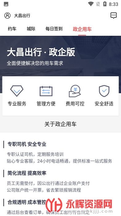 提供企业用车和管理解决方案,通过后台实现行程和费用管控,简单、高效。