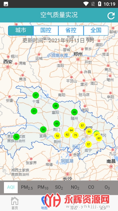 支持所有湖北的城市数据查看,包含全国多个监测点。