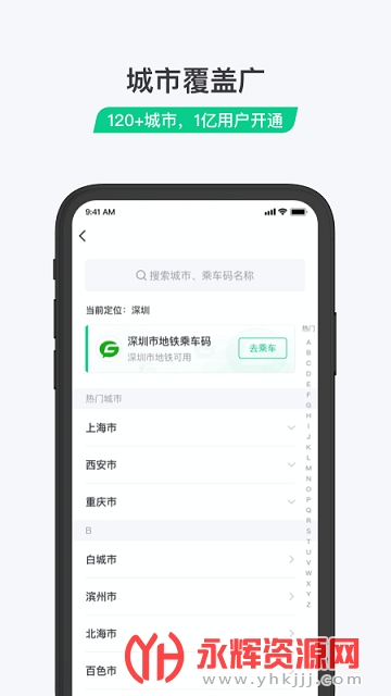 乘车码目前已经覆盖超过120个大中小城市,开通用户量超过1亿。不管是公交、地铁还是BRT、索道,只要是公共交通,都可使用乘车码刷码坐车。
