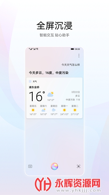 华为智慧语音app2021版是一款非常好用的手机语音助手工具软件,软件中为用户带来了非常专业可靠的手机智慧语音服务功能,帮助用户用语音即可轻松管理手机,说说话即可查天气、放歌、搜百科、还可以和你进行更多的场景对话,有兴趣的朋友就快来永辉下载体验吧!