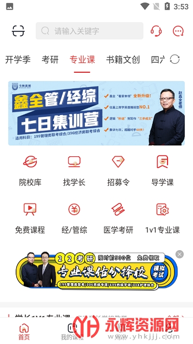 课程分类详尽,四级、六级、研究生考试,步步为营。