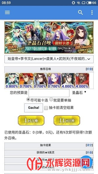 fgowiki抽卡模拟器是一款为fgo玩家提供抽卡模拟功能的软件,用户可以使用这款软件来模拟抽卡,这款抽你模拟软件会根据概率进行抽卡,看看自己运气好不好,是一款相当便捷的模拟抽卡软件,用户朋友可以在抽卡前先来这上面抽一抽,欢迎有需要的朋友来永辉资源网下载体验!