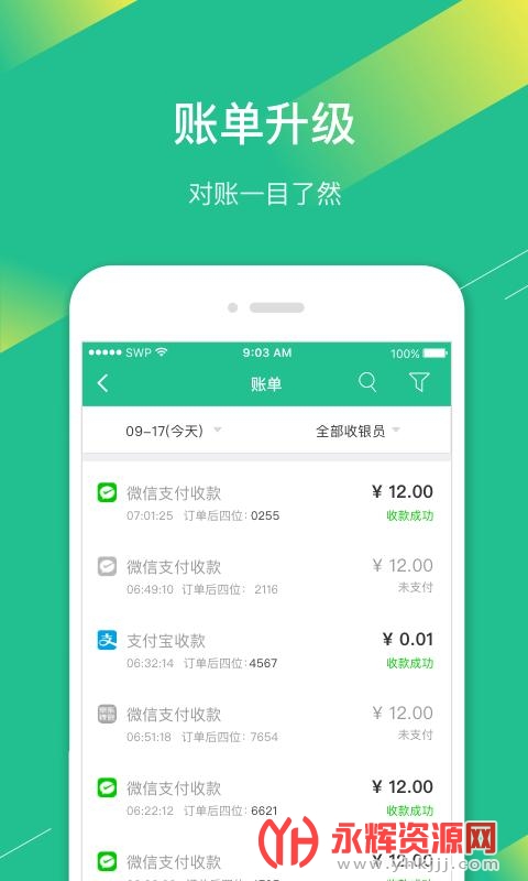 【对账】查询每日账单,每日营收一目了然;