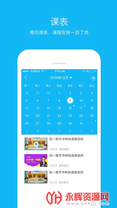 课表:报名课程一目了然,还能一键进入教室。