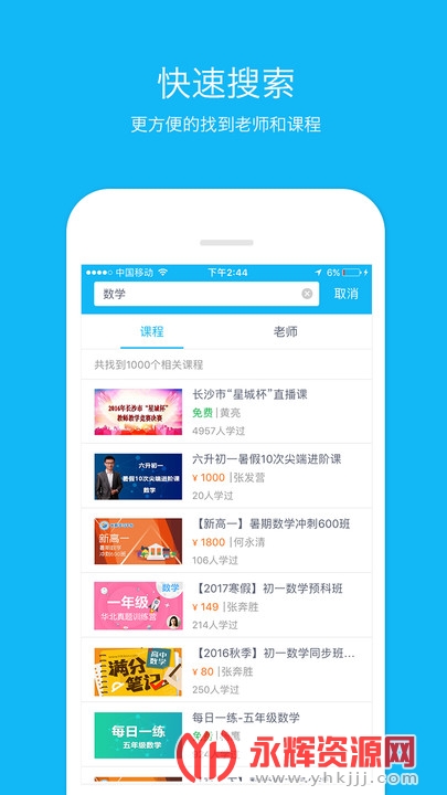 快速搜索:更方便的找到老师和课程。