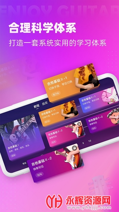 趣学吉他app是一款非常好用的乐器学习软件,软件中有着吉他调音功能、海量乐谱,能让你0基础学会吉他,有需要的朋友们可以来永辉资源网下载哦!