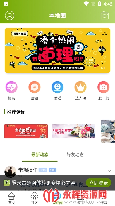 进入线上的本地圈那么可以与遇到的在线用户实时互动。