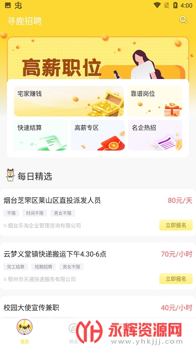 寻鹿招聘app是一款非常优质的手机找工作软件,软件每日更新超多优质的岗位信息,你可以与hr进行沟通预约面试,找到一份适合自己的工作,还在等什么呢?快来永辉资源网下载吧!