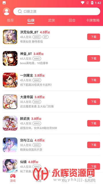 38手游折扣充值平台是一款非常受欢迎的手机游戏盒子工具软件,软件中拥有很多种类型的优质手机游戏资源可以下载来游玩,其中包含的游戏类型也是特别的丰富,能够让每一位用户都在这里找到自己喜欢的游戏,有兴趣的朋友就快来永辉下载体验吧!
