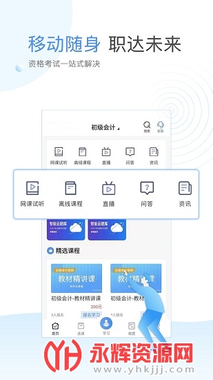 主要覆盖会计类、金融类、工程类、公务员事业单位、医学类、八大员等众多热门考试课程。