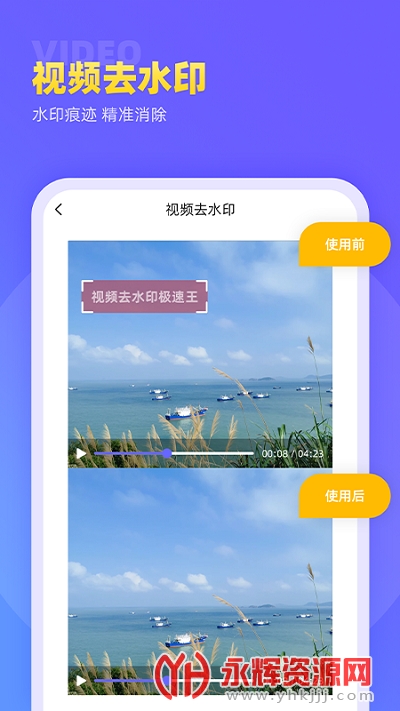 视频去水印极速王app是一款非常好用的手机视频编辑软件,使用软件导入视频就可以去除去水印,还有着许多视频编辑功能,有需要的朋友们快来永辉资源网下载吧!