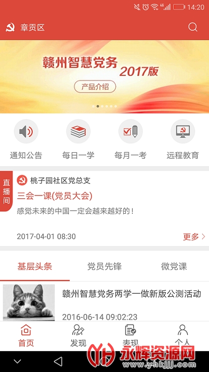 丰富的党建内容管理(新闻,知识,视频,直播),内置丰富的互联网应用