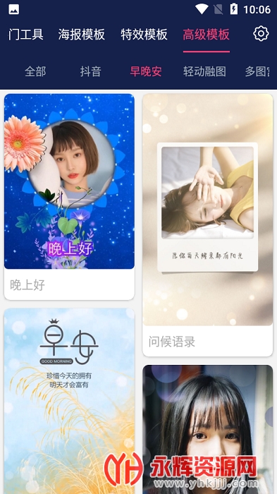 导入视频或者图片,一键制作精彩特效视频和文字视频,主要模版包括爆款音乐卡点视频、书单、炫酷音乐、创意、合拍、情感等。