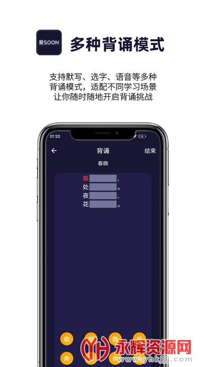 软件将会为用户自动的空出内容,您不需要自己掩盖背诵,更加的方便使用。