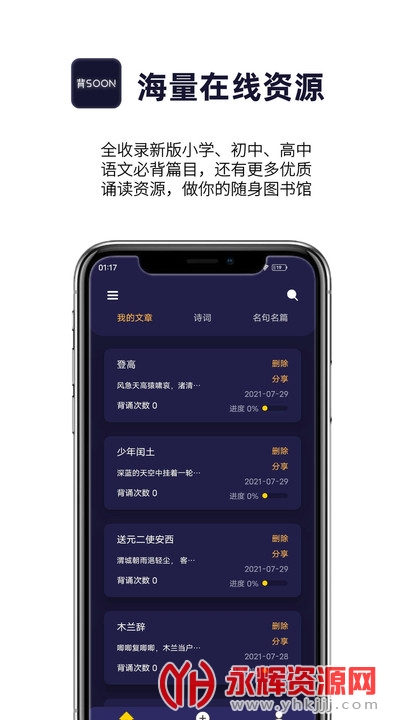 爱背诵是一款专为广大学生用户打造的背诵工具软件,可以很好的帮助学生们背诵各种文章书籍。并且软件的功能十分强大,支持各种格式的文件,无论是doc、docx还是TXT都可以直接一键导入,然后就可以进行背诵了!非常的方便好用!欢迎有需要的朋友们前来永辉资源网下载!