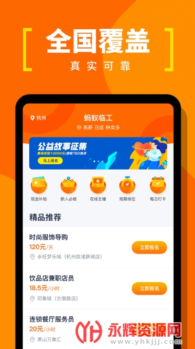 蚂蚁临工app是一款非常可靠的掌上找工作软件,软件中汇集了海量的兼职工作岗位,你可以利用空闲时间来赚取外快,还在等什么呢?快来永辉资源网下载吧!