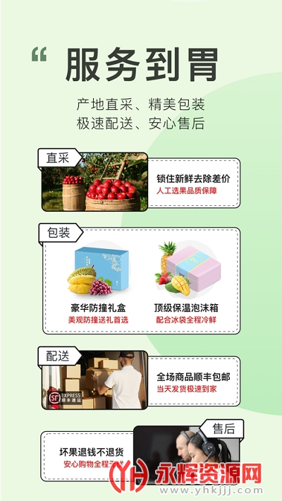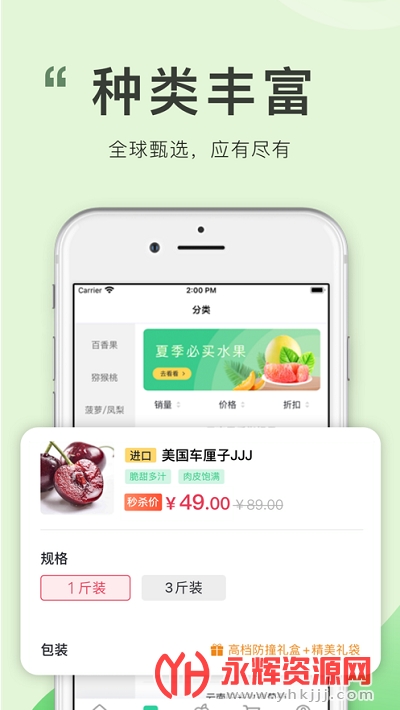 喜有优品app是一款非常好用的水果购物软件,软件中有着超多新鲜的水果商品,都是源头直采,通过软件进行下单可以为您包邮到家,喜欢吃水果的朋友们快来永辉资源网下载吧!