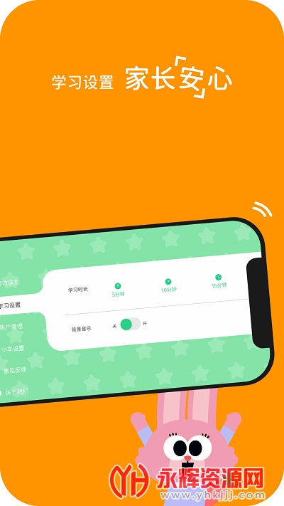 学习设置,家长放心。学习时长设置,背景音设置等功能,控制孩子使用时长,家长放心。大家可以更加轻松地让自己的孩子在这里学习;