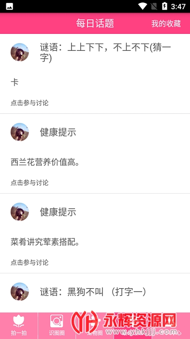 拍照识物app是一款非常好用的识别软件,无论是各种动物、植物、还是各种新鲜的食物,都可以一键拍照识别,能够快速准确的帮你找到对应的内容资料!非常的方便好用!可以轻松的为你解答各种疑惑。欢迎感兴趣的朋友们前来永辉资源网下载!
