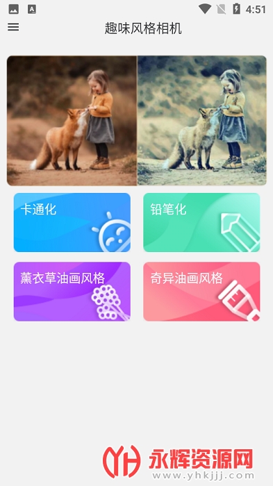 百变艺术相机能把你的照片变成艺术作品!还有卡通化、铅笔画、薰衣草油画风格、奇异油画风格等超级好玩的功能!超牛的图像ai智能算法,让你的难忘时刻变成永恒艺术!制作专属于自己的特色照片!提供超多好玩的特效镜头,方便用户轻松拍出喜欢的照片,方便实用。